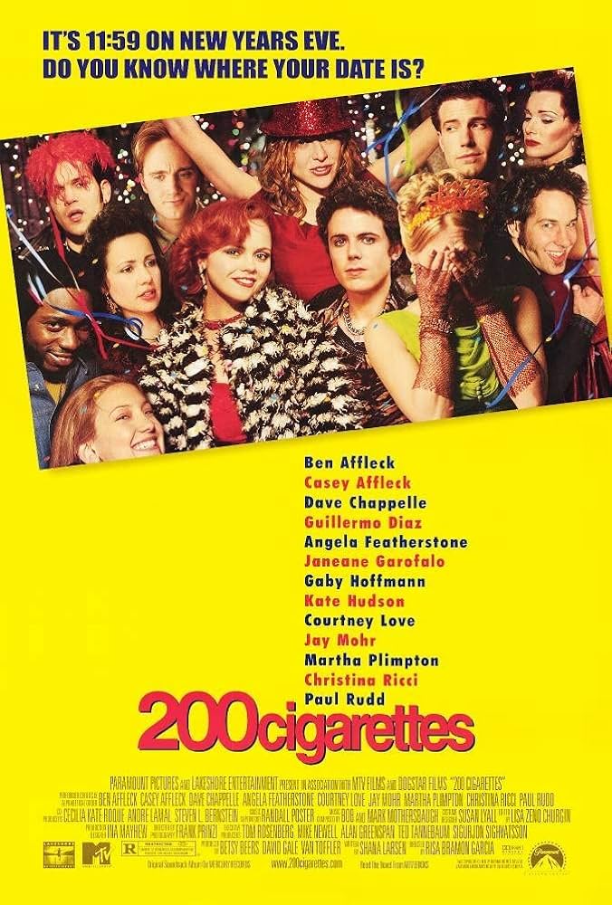 200 Cigarettes(1999) stars Ben Affleck, Casey Affleck, Dave Chappelle, Guillermo Diaz, Andela Featherstone, Janeane Garofalo, Gaby Hoffmann, Kate Hudson, Courtney Love, Jay Mohr, Martha Plimpton, Christina Ricci, Paul Rudd and Elvis Costello. It was written by Shana Larsen and directed by Risa Bramon Garcia.